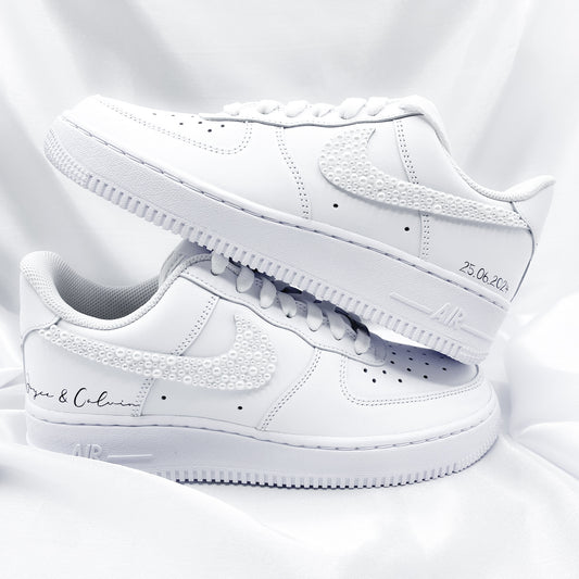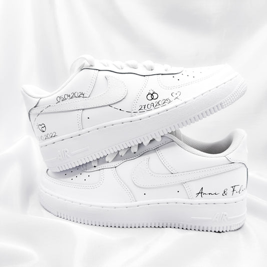 - Custom Nike Air Force 1 Brautsneaker/ Bräutigamsneaker Basic - Klassisches Design mit der Möglichkeit, individuelle Details hinzuzufügen.