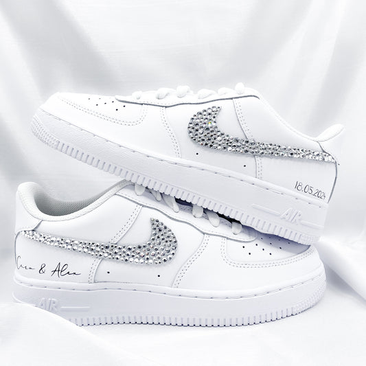 - Custom Nike Air Force 1 Brautsneaker Diamantenglanz - Strasssteine verleihen diesen Sneakers einen funkelnden Touch.