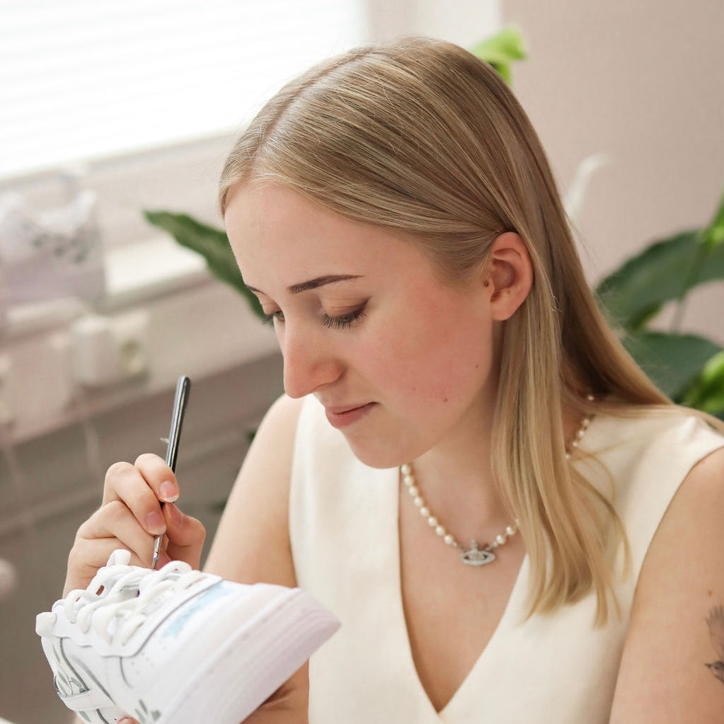 Jeder Sneaker wird in sorgfältiger Handarbeit bemalt, um einzigartige, persönliche Kunstwerke zu schaffen.